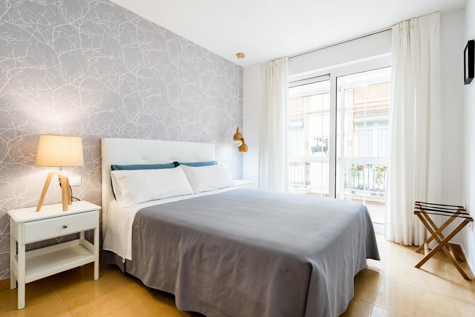 Este bonito apartamento, cuidadosamente decorado y equipado, dispone de habitación principal con cama de matrimonio, habitación secundaria con dos camas individuales, baño completo y acogedor salón comedor, así como cocina independiente equipada con frigorífico, lavavajillas, lavadora, cafetera, hervidor de agua, tostador y demás útiles de cocina. Las sábanas y toallas están incluidas. La entrada al edificio y apartamento es mediante cerradura inteligente.